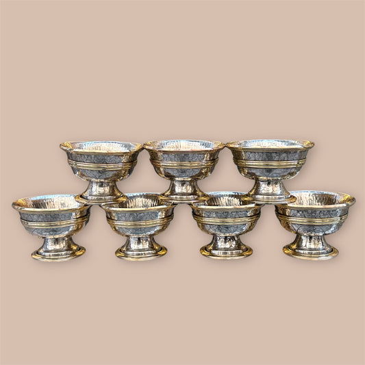 Tibetische 7-Wasser-Opferschale aus legiertes Kupfer - Spirituelle Schönheit Tibet