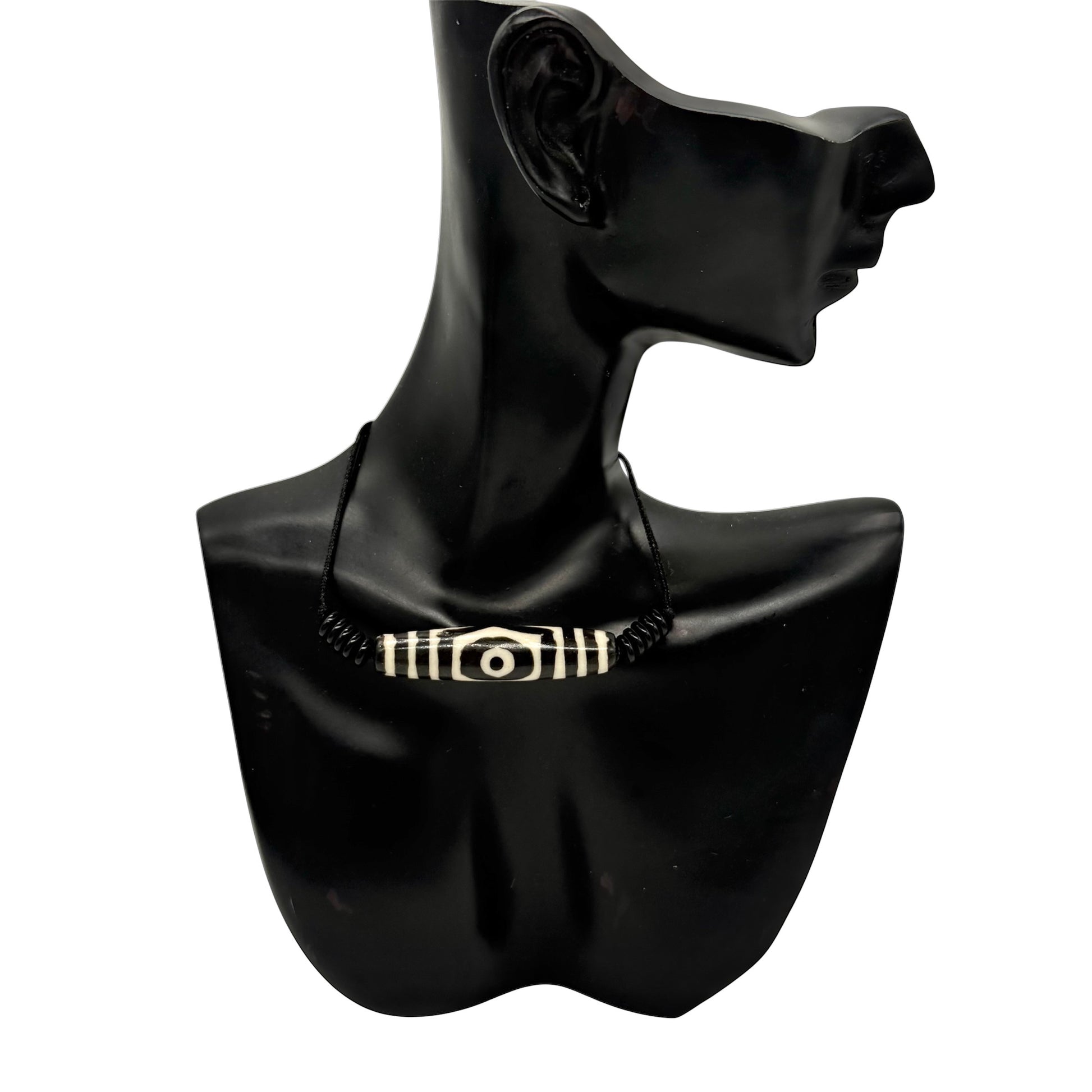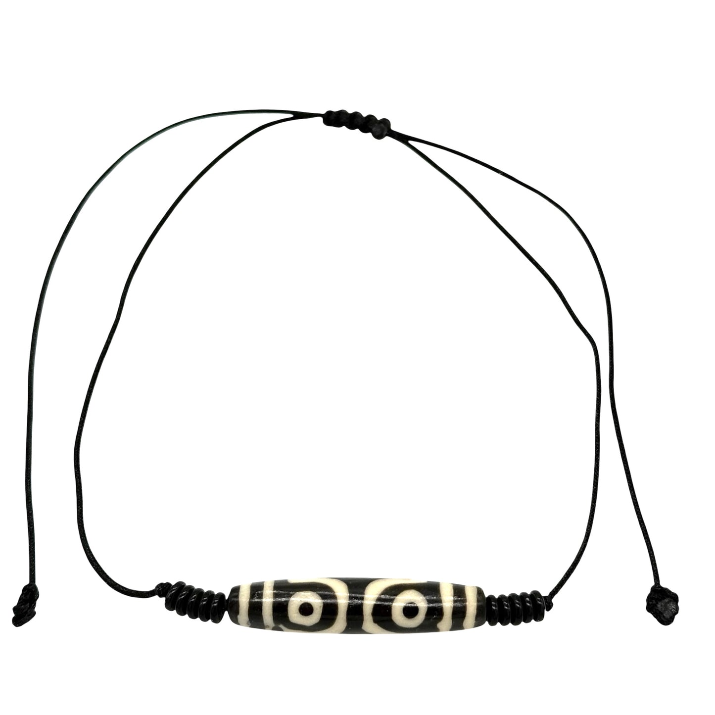 This Dzi bead with three eyes is inspired by traditional Tibetan protective beads and symbolizes prosperity, health, and longevity. It is considered particularly powerful and is worn as a spiritual talisman in Tibetan culture. Made of high-quality phenolic resin, it offers a durable and easy-care alternative to the original antique bead.