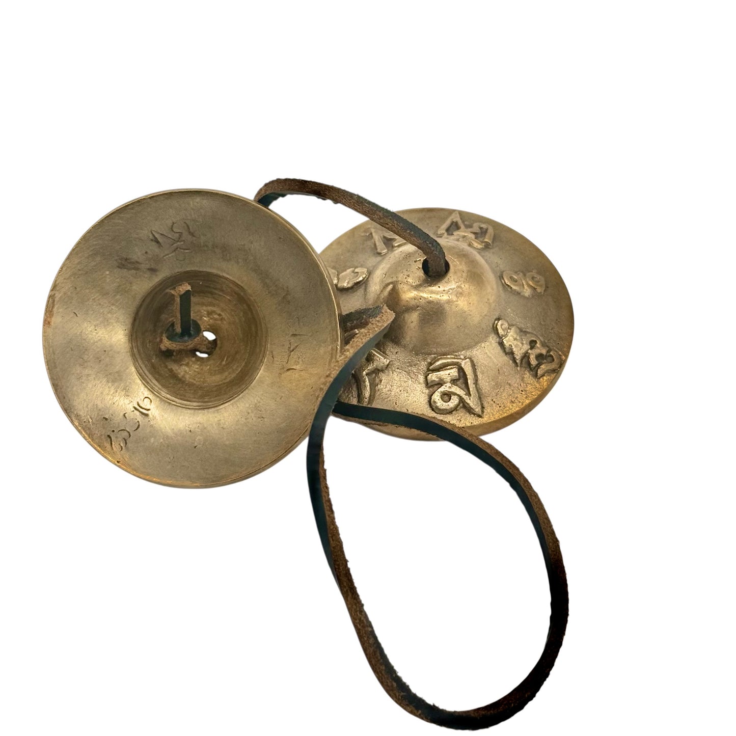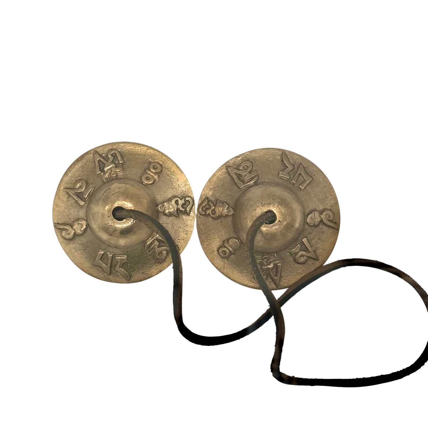 Cymbales tibétaines – Fabriquées à la main avec gravure « Om Mani Padme Hum »