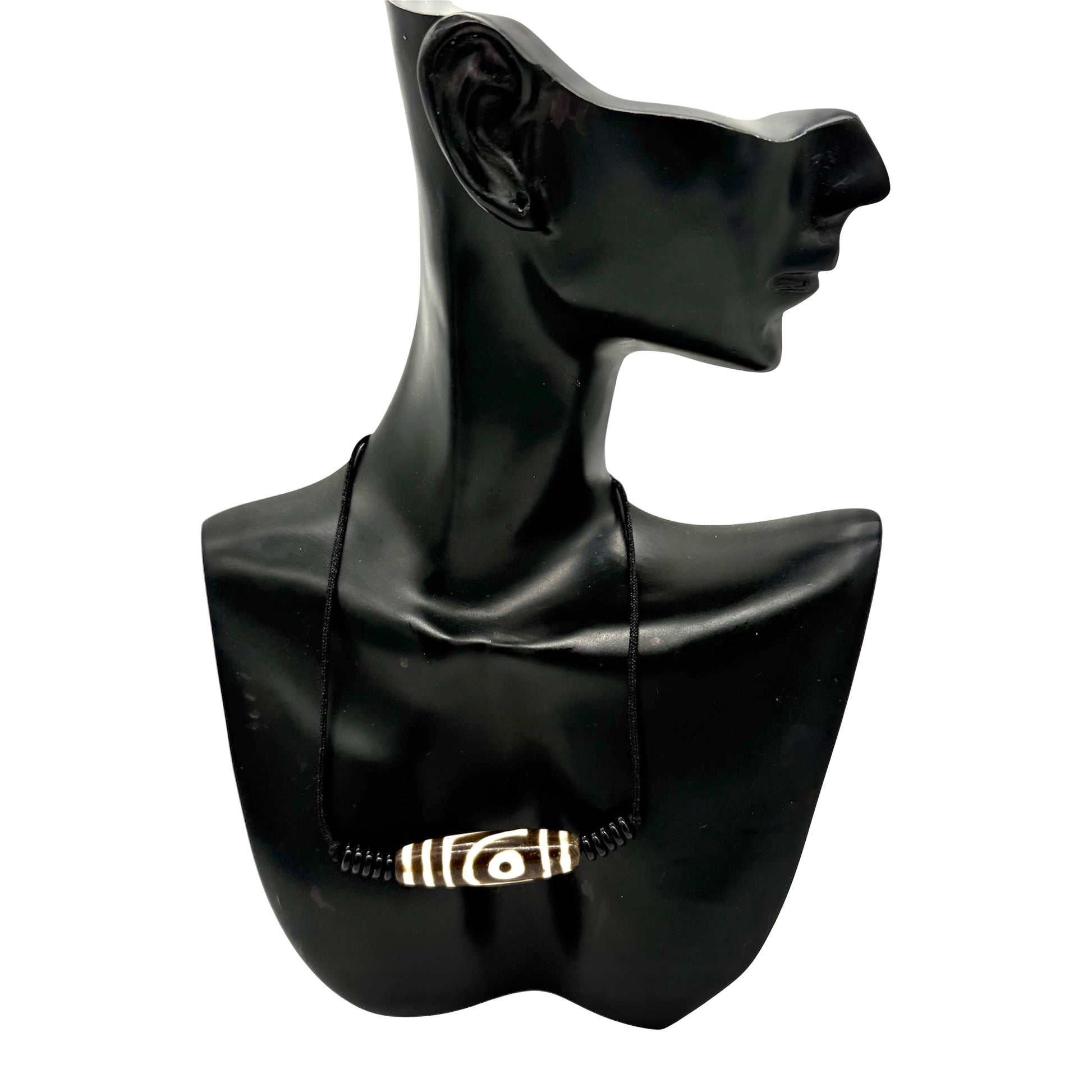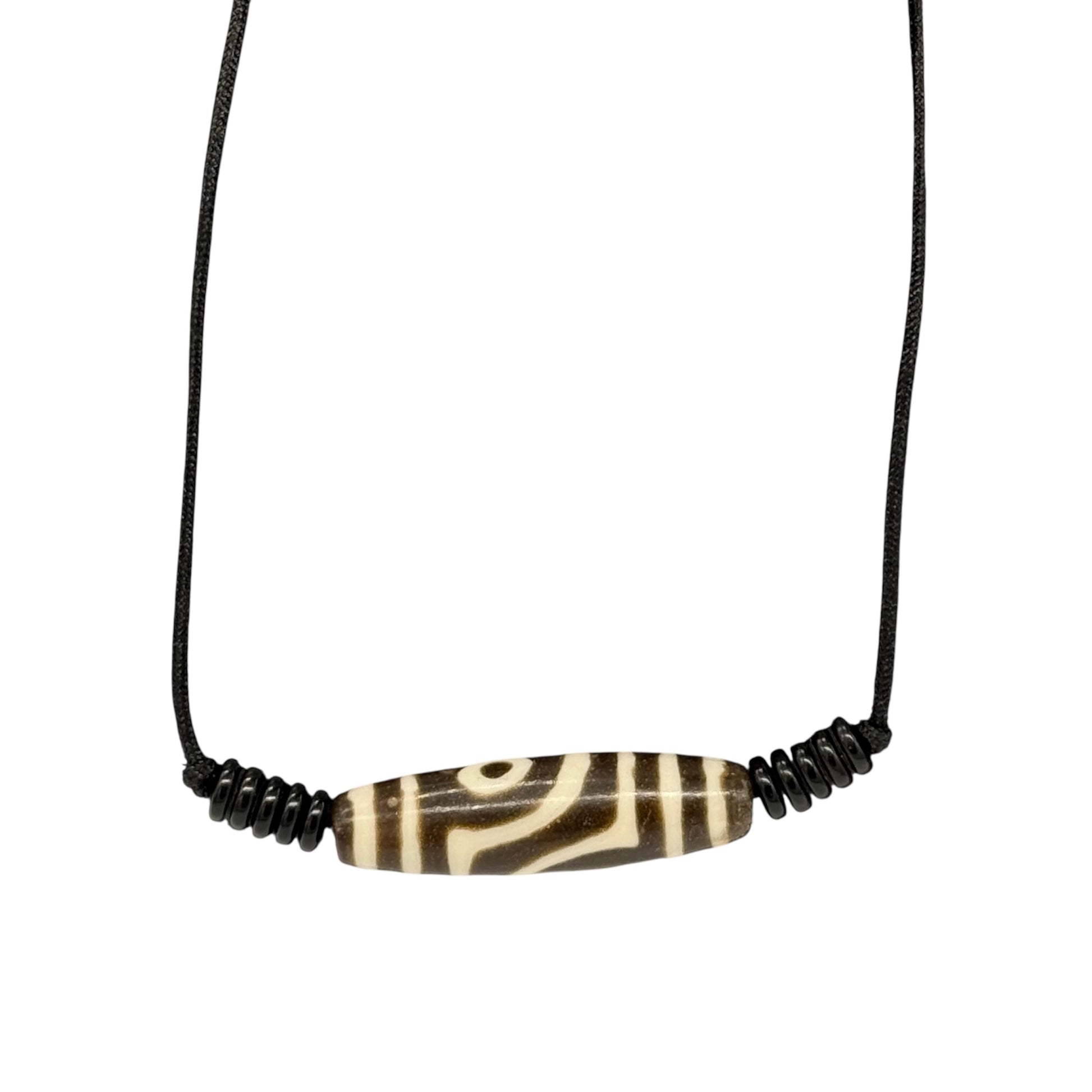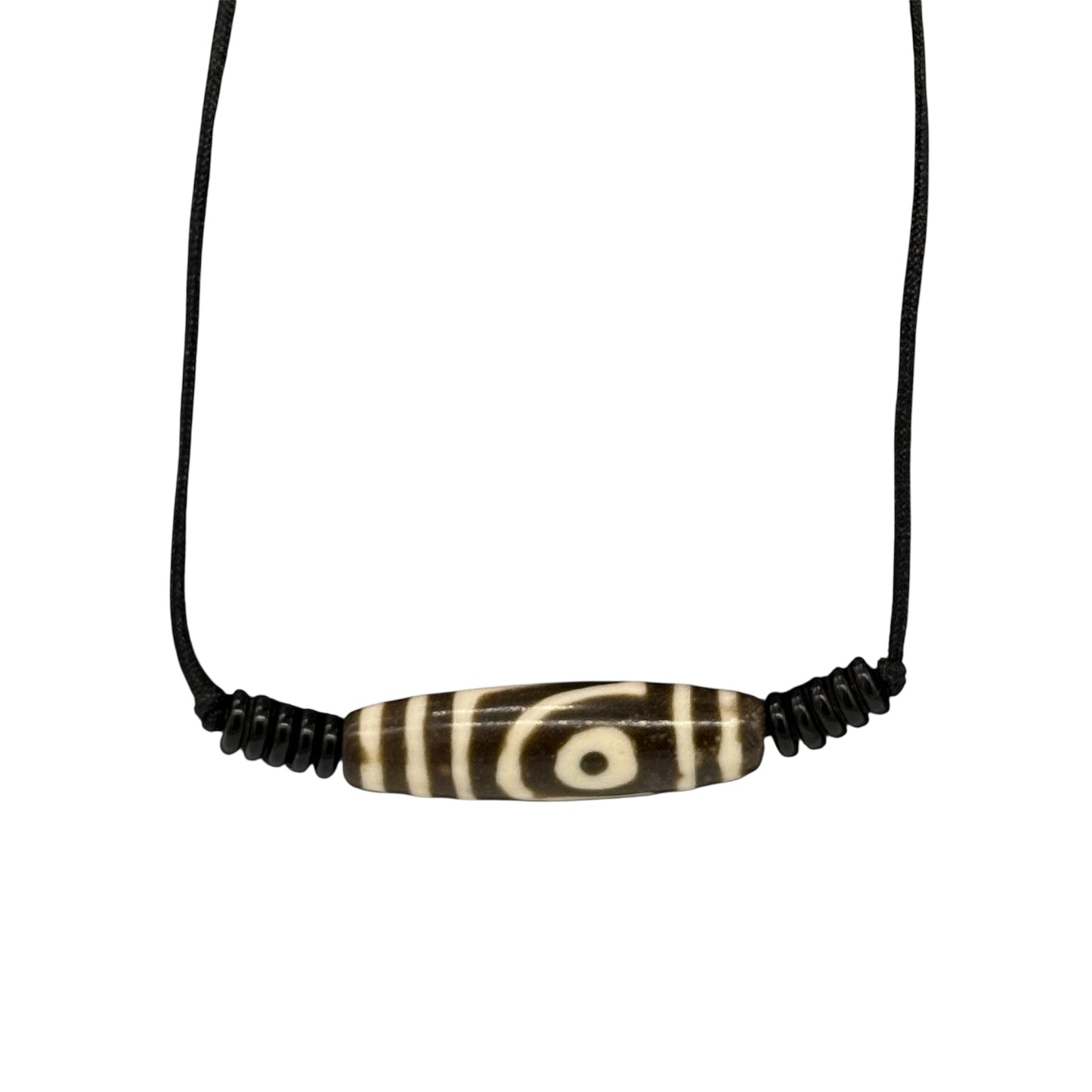Diese Dzi-Perle mit zwei Augen ist inspiriert von den traditionellen tibetischen Schutzamuletten, die für ihre spirituelle Bedeutung und kraftvolle Symbolik geschätzt werden. Hergestellt aus hochwertigem Phenolharz, vereint sie authentisches Aussehen mit moderner Langlebigkeit.